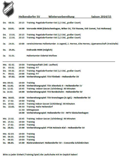 Trainingszeiten